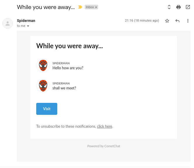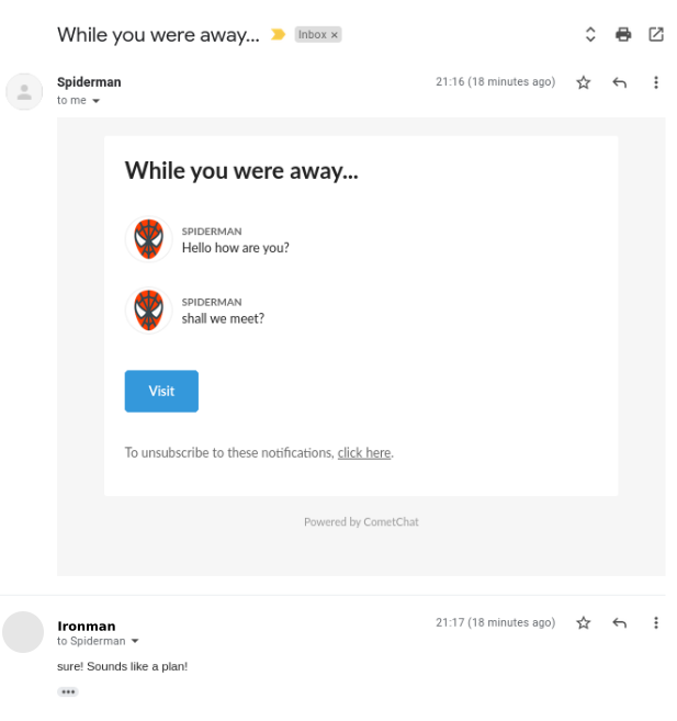 Click on Reply button in your mailbox and the composer will open up. Type your message and hit send. Your message will be sent to the CometChat user as a response in the chat.