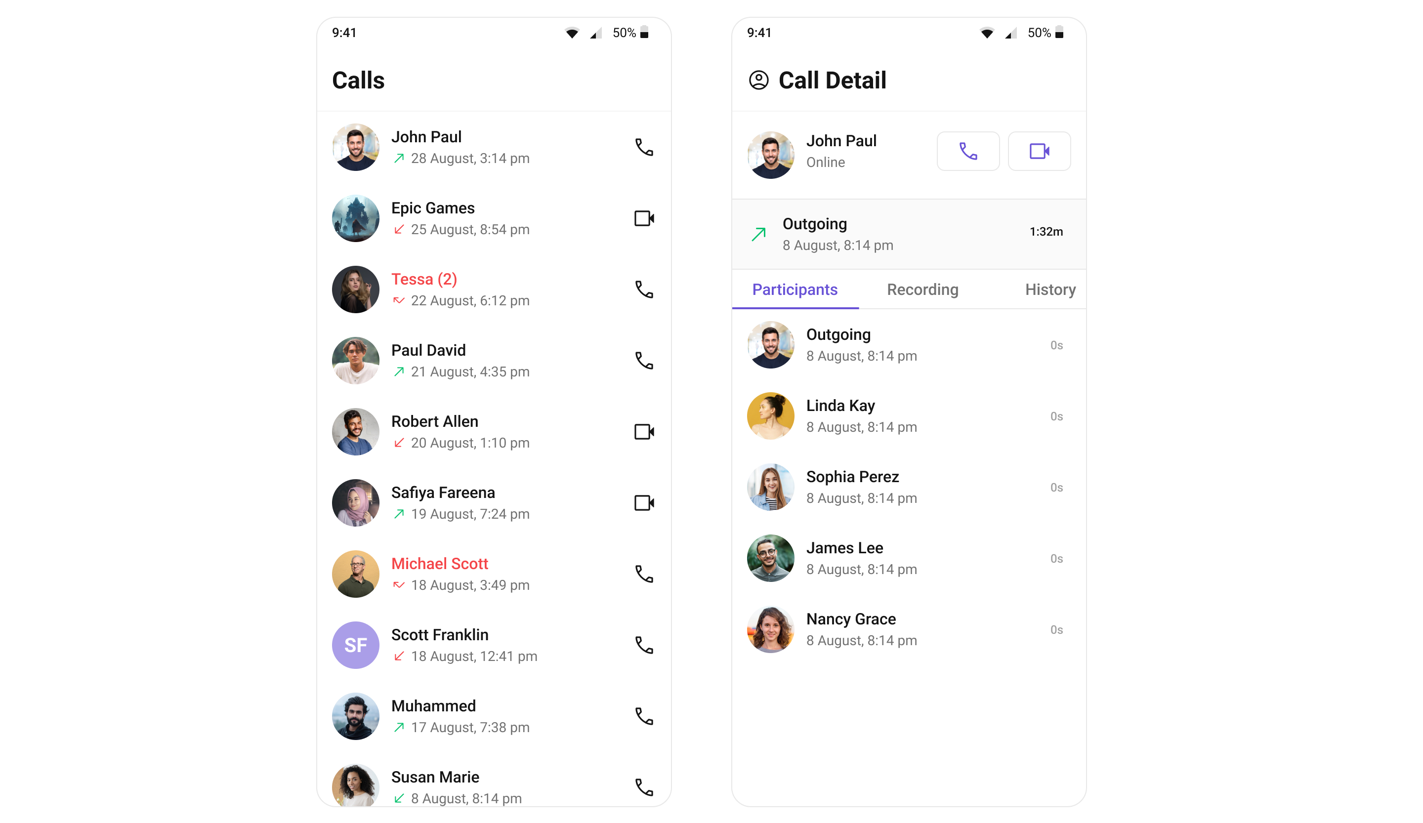 Call Logs widget provides you with the records call events such as who called who, the time of the call, and the duration of the call. This information can be fetched from the CometChat server and displayed in a structured format for users to view their past call activities.